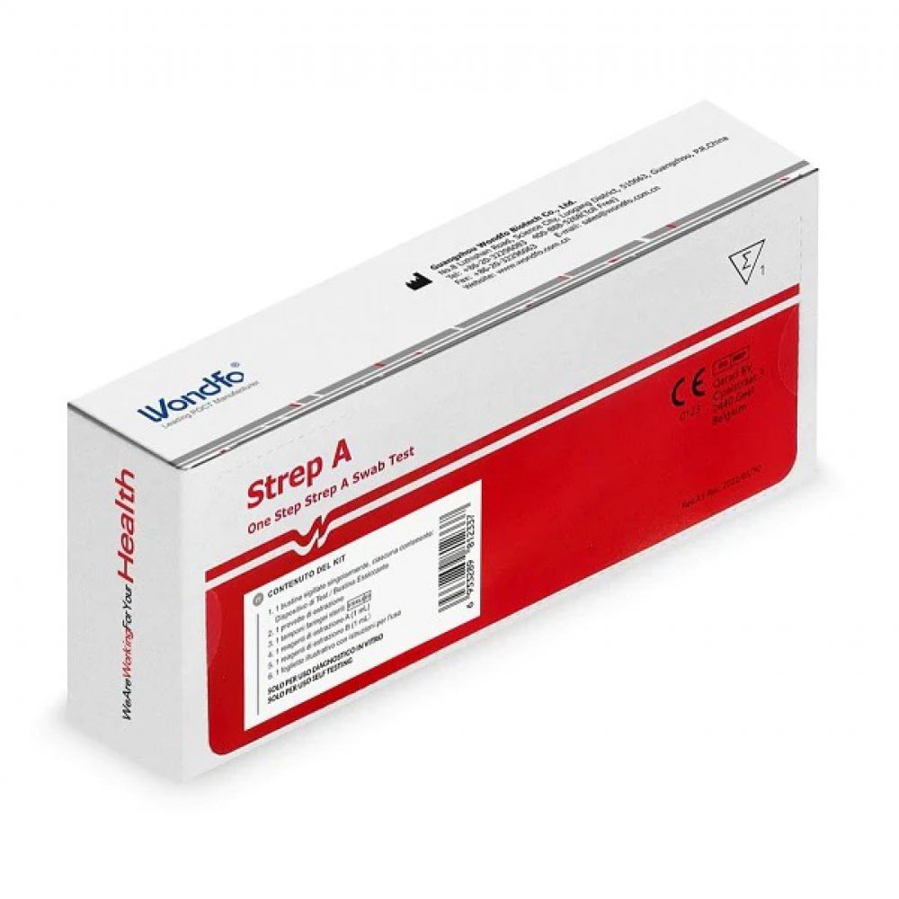 Test Rapido Streptococco: test rapido per la determinazione qualitatitiva dell’antigene dello streptococco A su tampone faringeo.