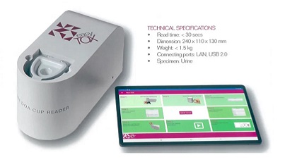 easyTOXTM The smart DOA cup reader: è uno stumento POCT sviluppato in Italia a marchio IVY Diagnostics per l’analisi delle droghe d’abuso tramite campione di urine con l’uso delle Cup per: Medicina del lavoro, Laboratori, Cliniche private.